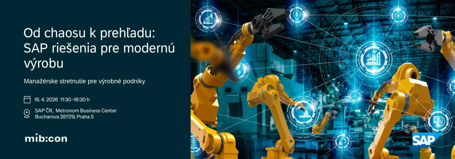 Dňa 16. 4. 2026 sa v Prahe uskutoční manažérske stretnutie „Od chaosu k prehľadu: SAP riešenia pre modernú výrobu“, ktoré organizuje sesterská spoločnosť Mibcon a.s.